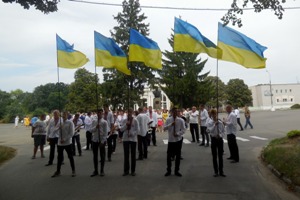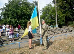 На міському стадіоні «Шахтар» з урочистого проходження групи прапороносців із загальноосвітньої школи І-ІІІ ступенів №5 сьогодні розпочалась церемонія підняття Державного Прапора України, проведення якої вже стало гарною традицією для українського народу.