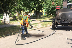 Робітники ПП «Регіон плюс» продовжують роботи з ремонту дорожнього покриття. Сьогодні проводиться ямковий ремонт вулиці Захисників України. Щебеневе покриття нанесене на вулицях Миру (біля міської котельні) та Пірогова.