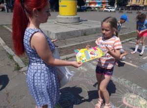 «Різнобарвна веселка країни дитинства» - під таким девізом на центральній площі міста сьогодні відбувся конкурс малюнка на асфальті до Міжнародного Дня захисту дітей, який традиційно відзначається в перший день літа.