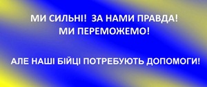 КОЖНА НАША ГРИВНЯ МОЖЕ ДОПОМОГТИ У ЗАБЕЗПЕЧЕННІ ВІЙСЬКОВОСЛУЖБОВЦІВ, ЯКІ БОРОНЯТЬ УКРАЇНУ ВІД ВОРОГА, НЕОБХІДНОЮ АМУНІЦІЄЮ ТА РЕЧАМИ. НАРАЗІ ПУБЛІКУЄМО ПОТРЕБУ НАШИХ БІЙЦІВ-ЗЕМЛЯКІВ.