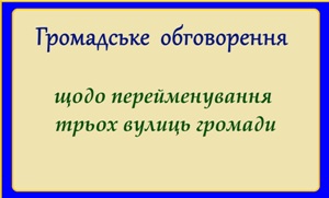 На виконання протоколу №3 засідання комісії з найменування та перейменування назв населеного пункту, вулиць, провулків, проспектів, площ, скверів, закладів та пам’ятних знаків Ватутінської міської територіальної громади від 13.09.2022 року, враховуючи пропозиції, що надійшли від громадськості, зокрема від жителів вулиць, назви яких планується змінити, розпочинаємо громадське обговорення щодо перейменування трьох вулиць громади.