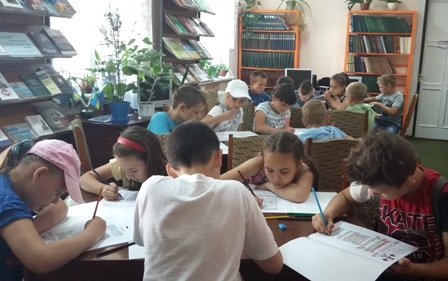 На захід до міської бібліотеки для дорослих вирушили учні 5-6 класів із загону «Енергійні».. На згадку про зустріч дітям у бібліотеці подарували два примірники ілюстрованої енциклопедії «Україна – моя Батьківщина».