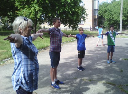 Як завжди новий день мовного табору по традиції розпочався з ранкової зарядки, але сьогодні кожен учень виступав у ролі тренера і пропонував всім виконати його улюблену і найбільш ефективну (на його думку) фізичну вправу. Звичайно, інструкції і розрахунок проводились на англійській мові.