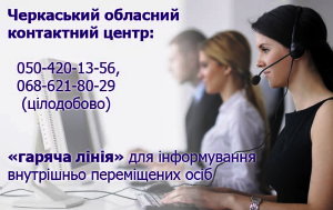 У Черкаській області цілодобово працює "гаряча лінія" по розміщенню в області мирних мешканців з тимчасово окупованих територій та територій, де відбуваються активні бойові дії.