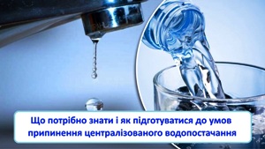 В умовах припинення енергопостачання або його суттєвого обмеження можливе припинення централізованого водопостачання населення. Тому кожен з нас повинен підготуватись, щоб мати запас питної води.