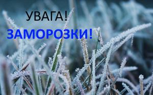 УВАГА! У зв’язку з ультраполярним вторгненням арктичного повітря, на Черкащині, вночі 30 вересня – 1-3 жовтня очікуються заморозки на поверхні ґрунту 0-5° та місцями у повітрі 0-3. (I рівень небезпечності, ЖОВТИЙ).