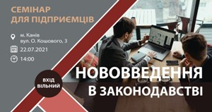 22 липня 2021 року о 14:00 Департамент регіонального розвитку Черкаської обласної державної адміністрації у партнерстві з Канівською міською радою та спільно з державними органами запрошує підприємців, роботодавців і громадські організації підприємців Черкащини на безкоштовний семінар щодо підвищення рівня знань з питань змін та нововведень у законодавстві.
