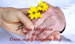 Щиро вітаємо вас з МІЖНАРОДНИМ ДНЕМ ЛЮДЕЙ ПОХИЛОГО ВІКУ ТА ДНЕМ ВЕТЕРАНА! Ця дата – це можливість висловити вдячність за багаторічну сумлінну працю, стійкість і натхнення поколінню, на долю якого випало чимало випробувань, болю і втрат, проте зуміло зберегти гідність, віру і любов.