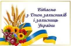 Щиро вітаємо всіх хто стояв та стоїть на захисті нашої держави, хто з громадянською свідомістю і самовідданістю служив і служить основним гарантом захисту її цілісності з Днем захисників і захисниць України та Днем українського козацтва!